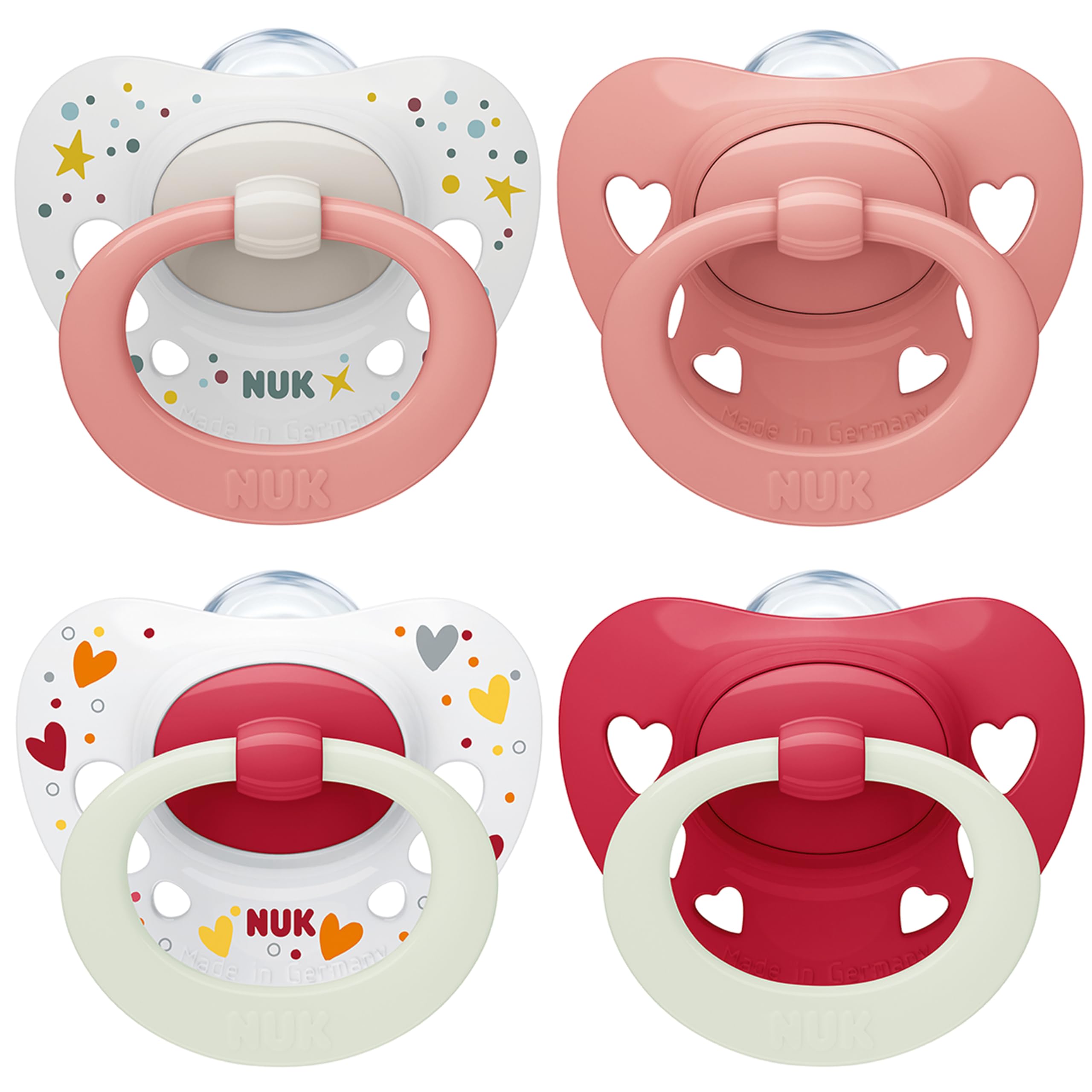 ![]() | NUK Signature Day & Night Smoczek dla niemowląt | 0-6 miesięcy | Koi 95% dzieci | Smoczki silikonowe bez BPA, w kształcie serca | Świeci w ciemności | Serca | Zestaw 4 szt Czerwony 0-6 mois Zestaw 4 szt | 58 zł | B0BZJKF35B | 4008600429593 |