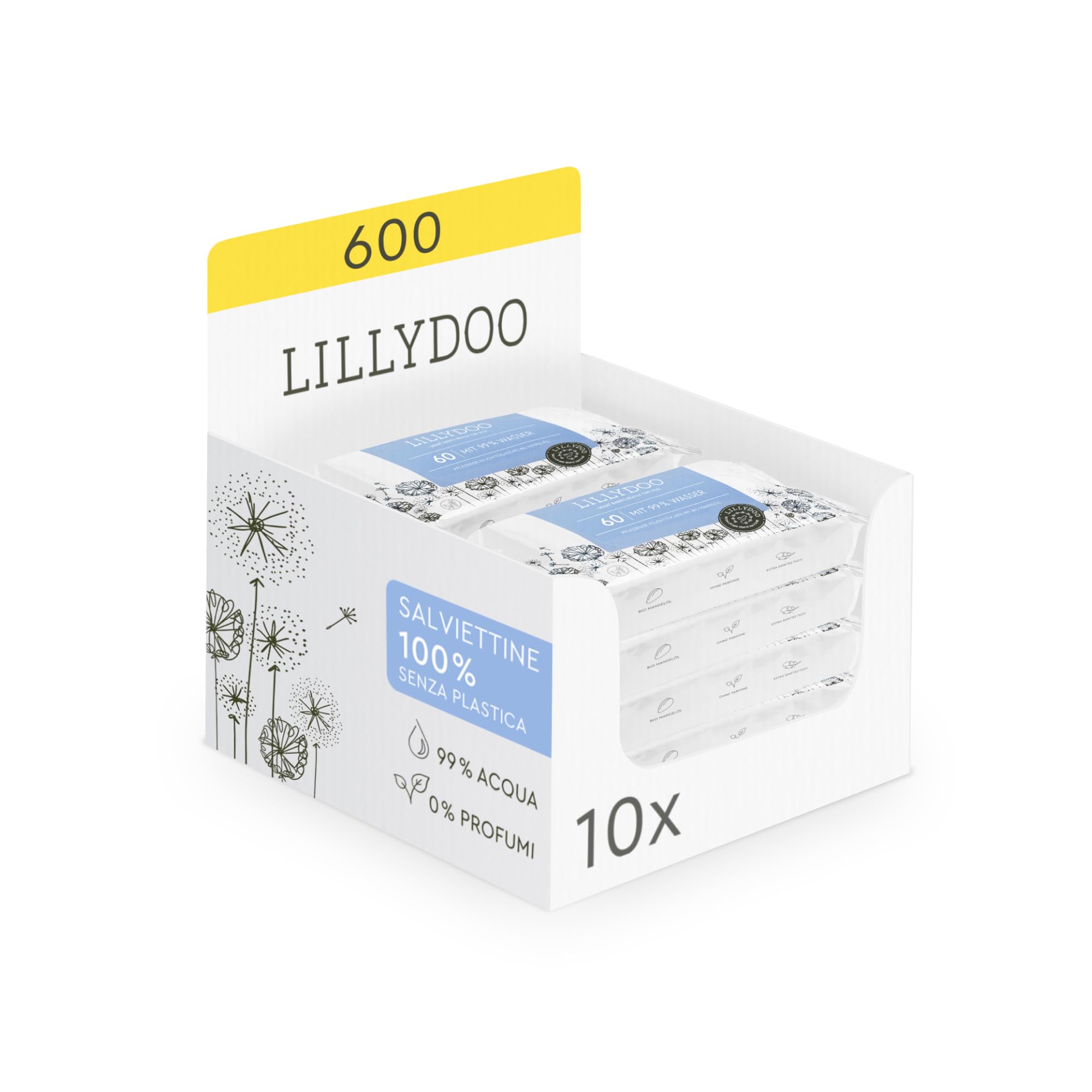 ![]() | Chusteczki nawilżane LILLYDOO 99% wody, 10 opakowań po 60 sztuk (600 chusteczek), chusteczki 100% bez plastiku, bez zapachów i delikatne, takie jak woda i bawełna (FSC Mix) | 110 zł | B0BLP9KBCH | 4260678847413 |